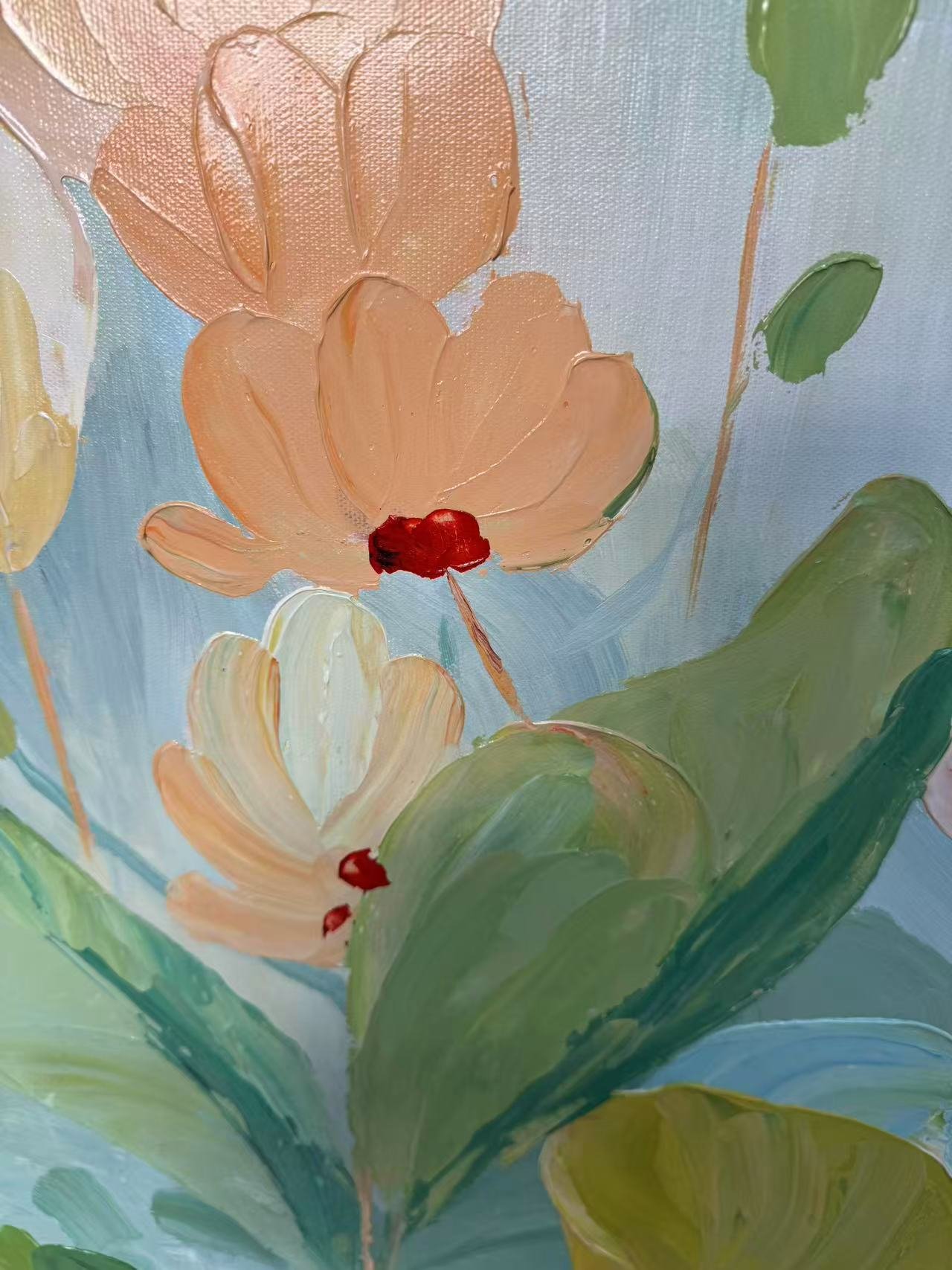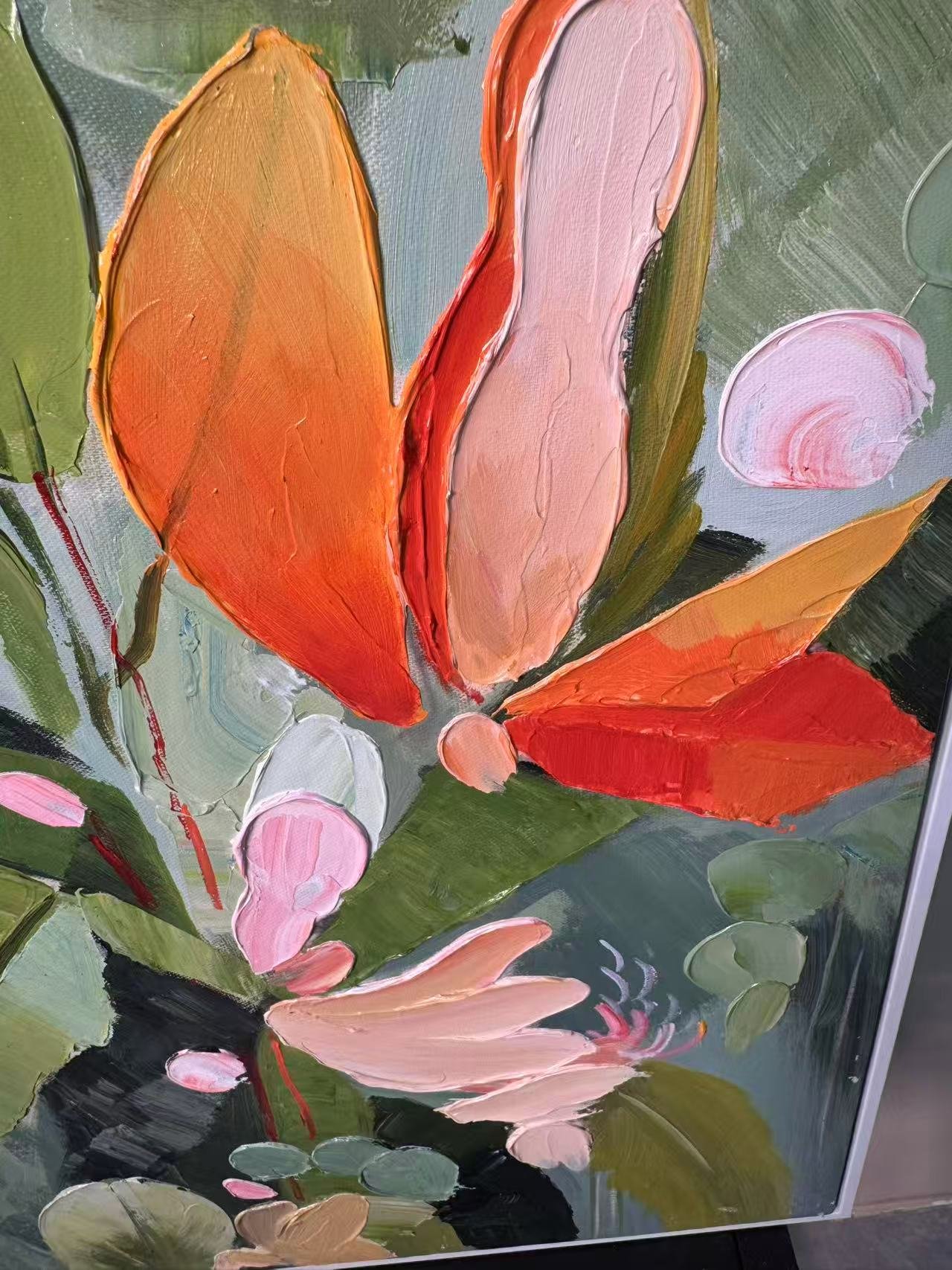 Discover the exquisite detail of a hand-drawn oil painting featuring the lotus flower. This artwork captures the delicate beauty and symbolic purity of the lotus through expert brushwork and rich oil textures. Its refined composition brings serene elegance to any setting, perfect for those appreciating both artistic mastery and meaningful symbolism.