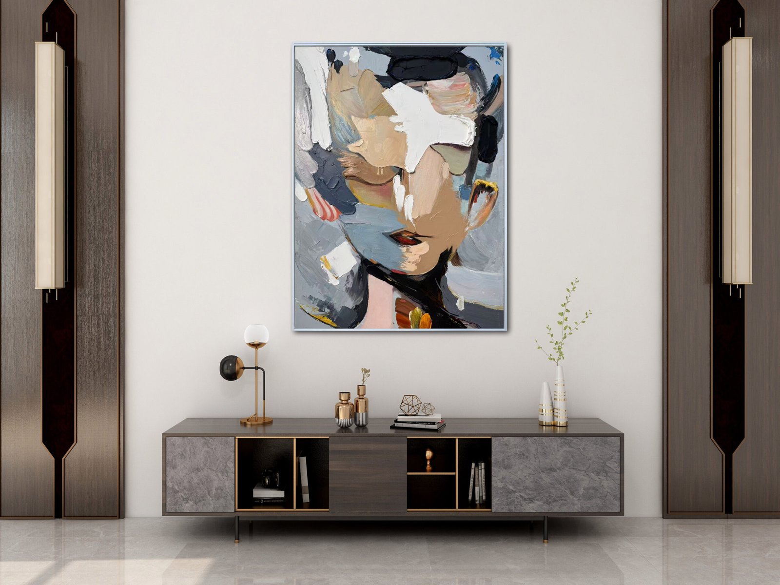 Experience the refined artistry of hand-drawn oil paintings featuring abstract figures, crafted by a master artist